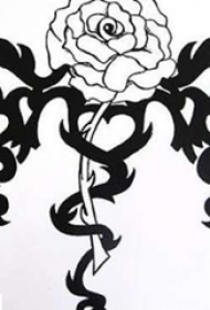 黑色植物藤缠绕玫瑰花刺青简单线条图案手稿素材图片