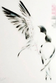 虚实结合的黑色点刺小动物小鸟刺青手稿图片