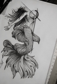 有创意的黑色几何元素抽象线条人鱼刺青图案图片