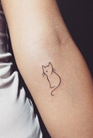 女生手臂上黑色线条简约猫咪轮廓小图案刺青图案图片