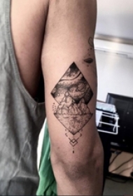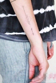 男生手臂上黑色线条几何元素箭文艺刺青图案图片