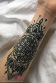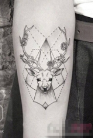 女生手臂上黑灰色几何线条唯美花纹刺青图案图片