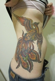 女生侧腰彩绘水彩创意个性霸气凤凰刺青图案图片
