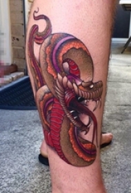 男生腿上彩绘技巧创意蛇刺青图案图片