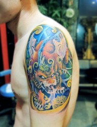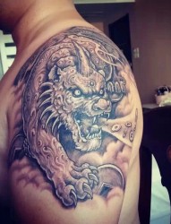 最好的纹身馆推荐一款手臂貔貅纹身图案