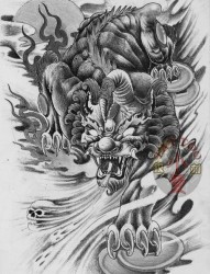 一款霸气的貔貅纹身手稿