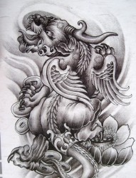 纹身手稿神兽貔貅作品