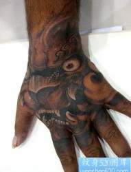一只满是貔貅纹身的手背