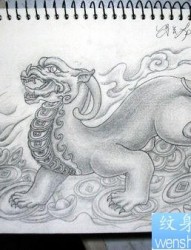 一款貔貅纹身手稿图案