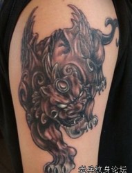 神兽纹身图片:手臂招财神兽貔貅纹身图案