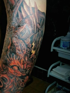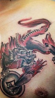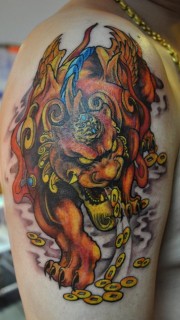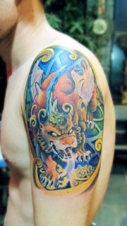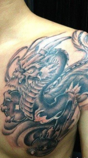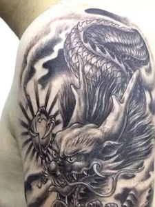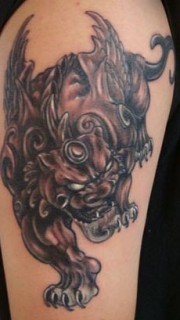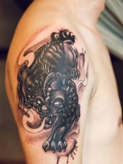 大臂帅气豪迈的黑灰貔貅纹身图案