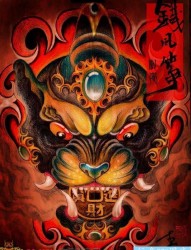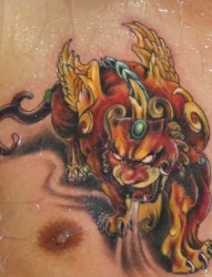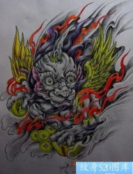 胸部彩色招财神兽貔貅纹身图片纹身图案