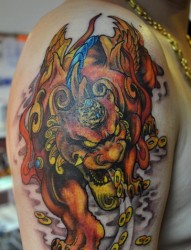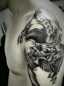 后肩经典帅气的貔貅纹身