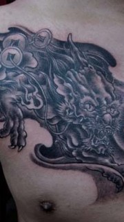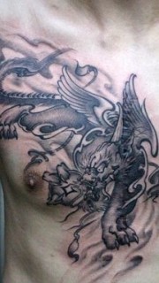 胸部招财神兽貔貅纹身图片
