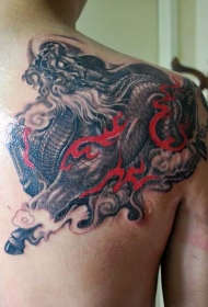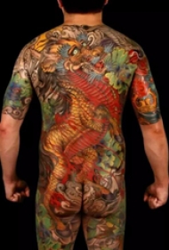 男性背部权威时髦的图腾麒麟字符纹身图案