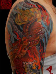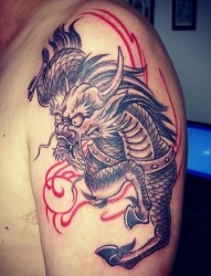 肩部一款经典的神兽麒麟纹身