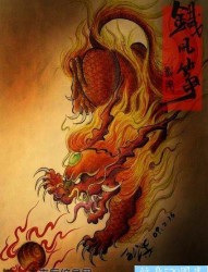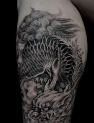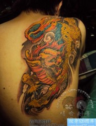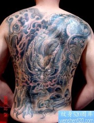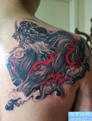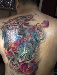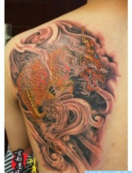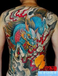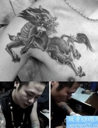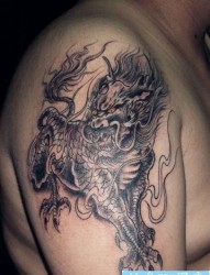 男生喜欢的肩背帅气的神兽麒麟纹身图片