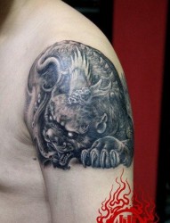 男生手臂帅气超酷的神兽貔貅纹身图片