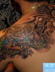 肩背招财神兽貔貅纹身图片