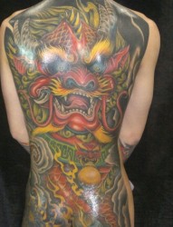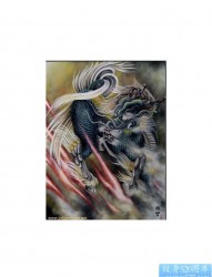 帅气满背彩色麒麟纹身图片图案(精品)
