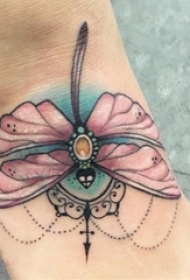 女生脚背上彩绘水彩素描创意蜻蜓纹身图片