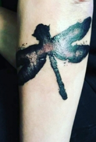 男生手腕上黑色点刺小动物蜻蜓纹身图片