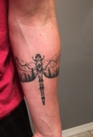 蜻蜓纹身图案 男生手臂上黑色的蜻蜓纹身图片