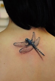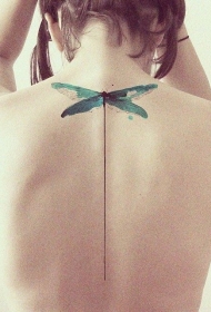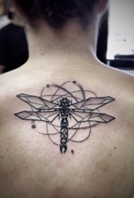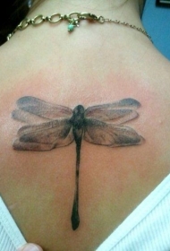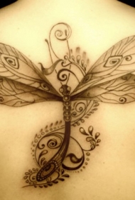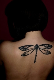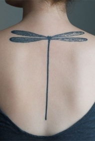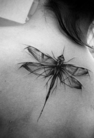 背部黑色漂亮的素描风格蜻蜓纹身图案