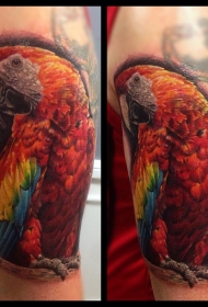 肩部彩色鲜艳的金刚鹦鹉纹身图案
