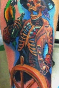 手臂彩色海盗骨架与鹦鹉纹身图片