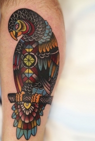 欧美小腿纹身 男生小腿上彩色的鹦鹉纹身图片