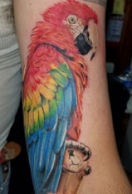 腿部彩色逼真有趣的鹦鹉纹身图案