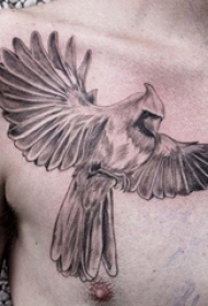 纹身胸部男 男生胸部黑色的鹦鹉纹身图片