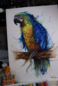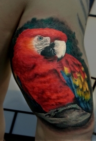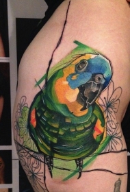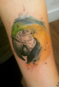 手臂特别逼真的彩绘鹦鹉纹身图案