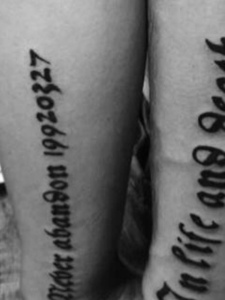 90后小情侣手臂内侧英文纹身