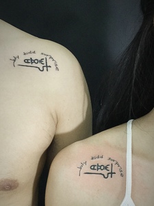 90后小情侣肩膀下的个性纹身图案