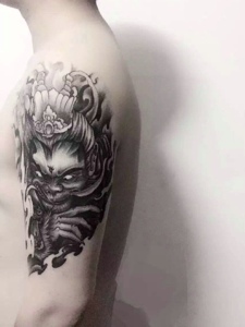 90后小男生手臂大圣纹身图案
