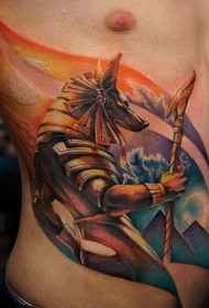 侧肋水彩阿努比斯纹身图案