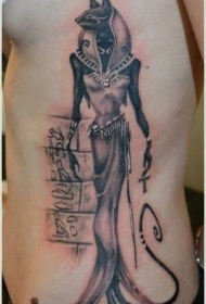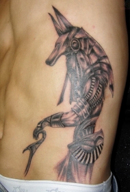 侧肋逼真的阿努比斯纹身图案