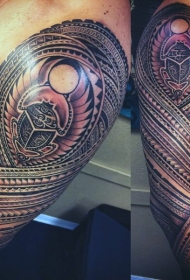 手臂埃及圣甲虫部落风格花纹纹身图案