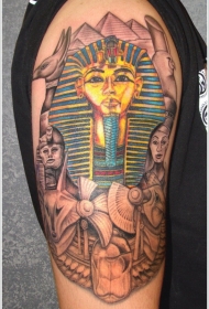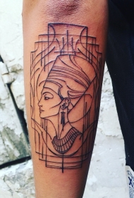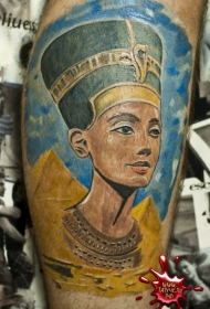 埃及金字塔和纳芙蒂蒂公主彩色逼真的纹身图案