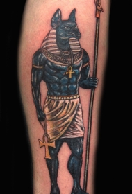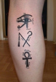 腿部埃及十字架荷鲁斯之眼符号纹身图案