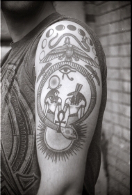 肩膀荷鲁斯埃之眼和十字架手链纹身图案
