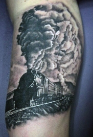 大臂逼真的黑灰音乐家与吉他纹身图案