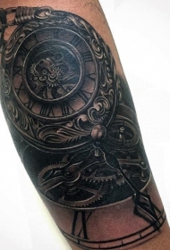手臂写实逼真的孤独男孩与时钟纹身图案