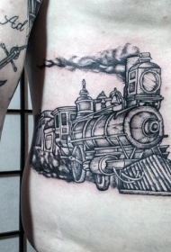 侧肋精美的黑白火车纹身图案