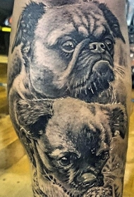 华丽的黑白小狗腿部纹身图案