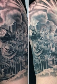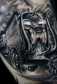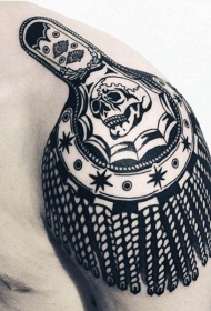 肩部个性的黑白骷髅与部落图腾纹身图案