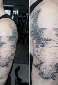 手臂甜蜜黑白湖岸夜景星空女孩纹身图案