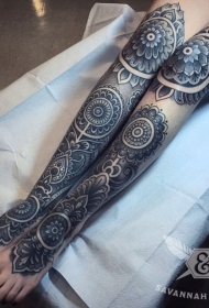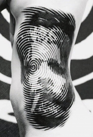 大腿黑色点刺神秘的几何符号眼睛纹身图案